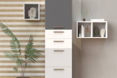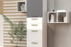Colectia de Living ALL ROOM CONCEPT ofera design casual cu influente minimaliste si configurabilitate maxima. Carcasa alb mat cu lac UV si fronturi in multiple nuante, inclusiv sticla sablata. Manere si picioare personalizabile, sertare si usi inversabile pentru flexibilitate si stil unic.