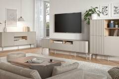 Comoda mare BELUCI 160x76x40cm casmir/ stejar cremona, picioare metal casmir