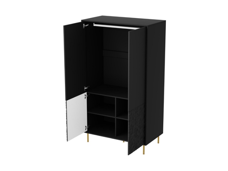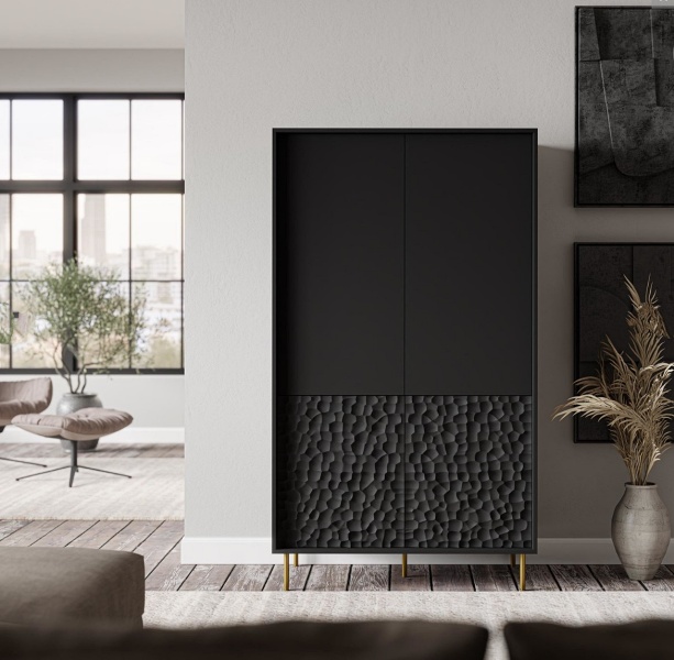 Comoda inalta cu 4 usi BULLET 90x185x53cm negru, picioare aurii