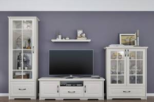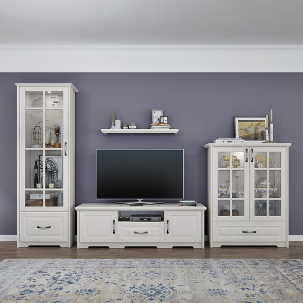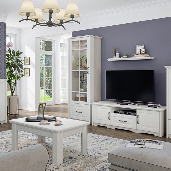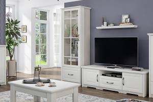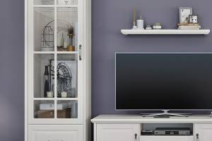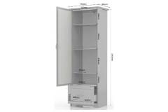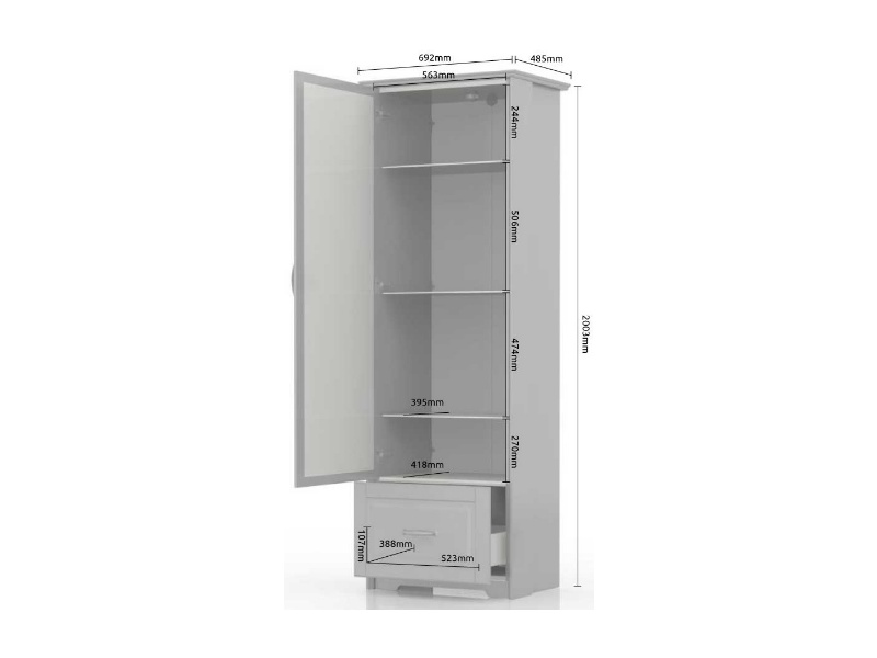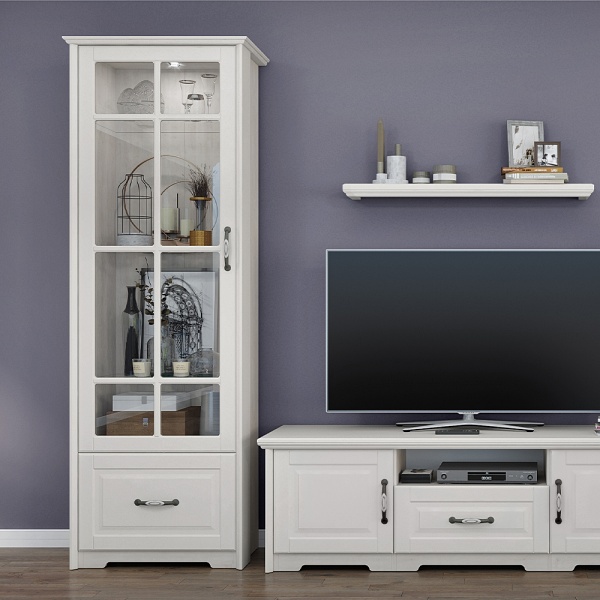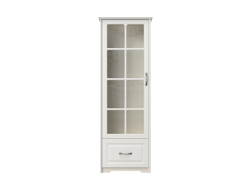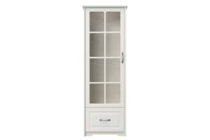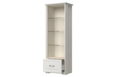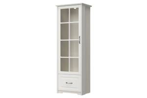 Vitrina inalta cu 1 usa din sticla cu led si 1 sertar EVERGREEN 69x201x49cm ivory/ pin polar