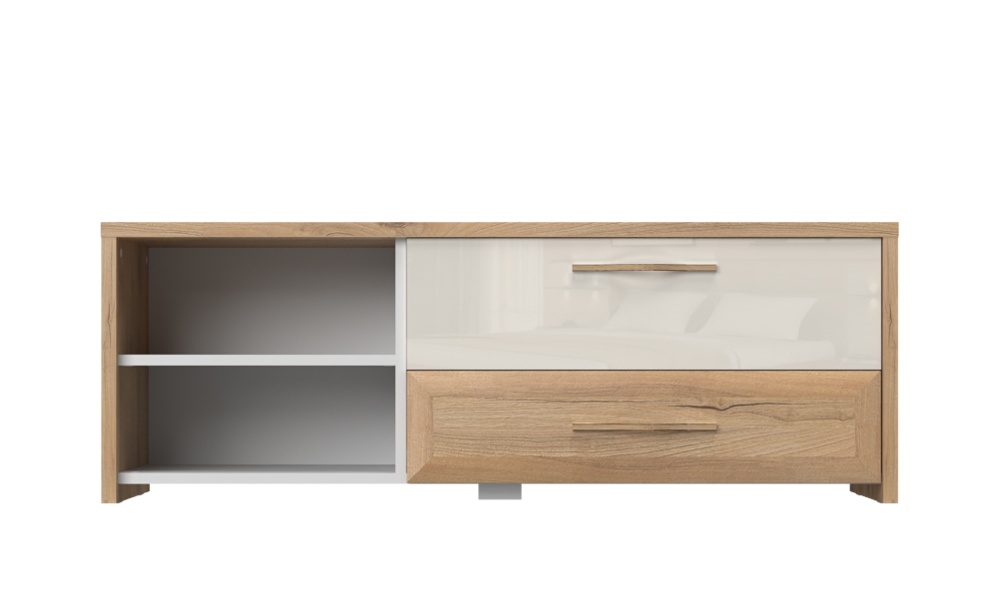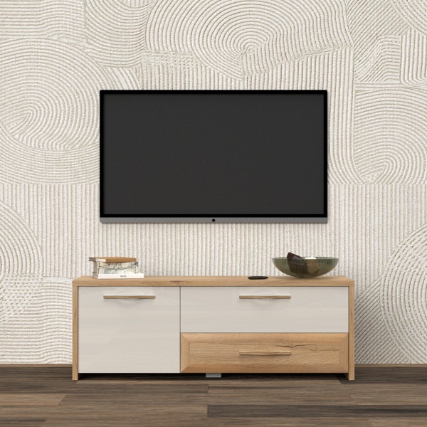 Comoda TV cu 1 usa si 2 sertare GALA 135x48x46cm bej lucios/ nuc Pacific