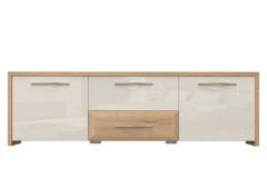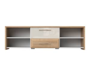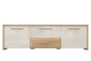 Comoda TV cu 2 usi si 2 sertare GALA 161x48x46cm bej lucios/ nuc Pacific