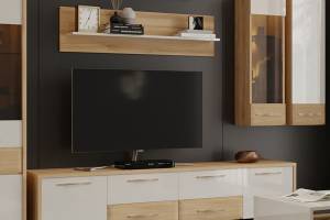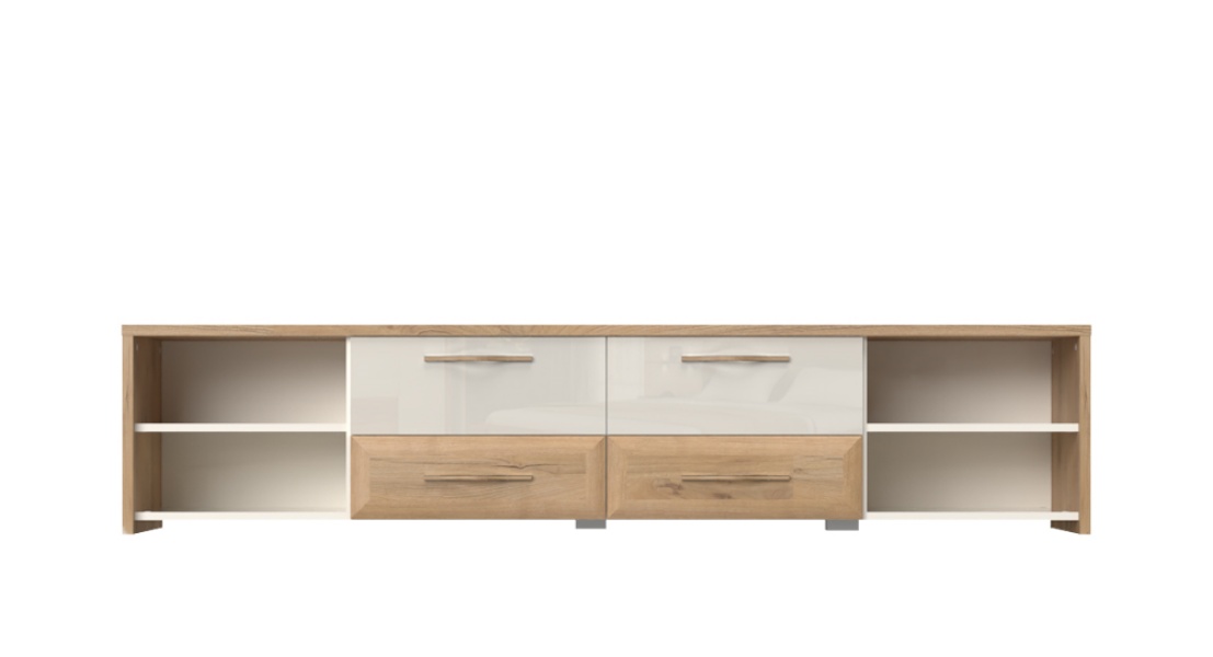 Comoda TV cu 2 usi si 4 sertare GALA 219x48x46cm bej lucios/ nuc Pacific
