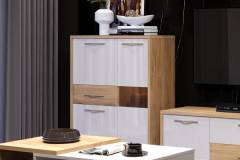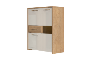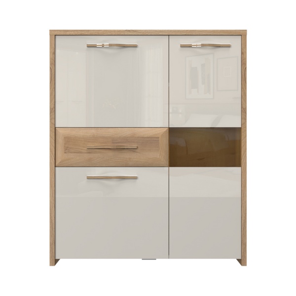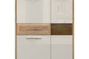 Vitrina lata cu 3 usi si 1 sertar GALA 96x115x41cm bej lucios/ nuc Pacific
