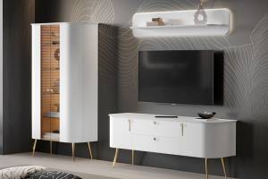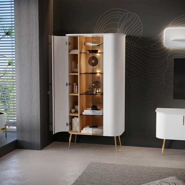 Vitrina cu 2 usi sticla Parsol GALET 91x179x47 cm alb mat, picioare si manere auriu neon