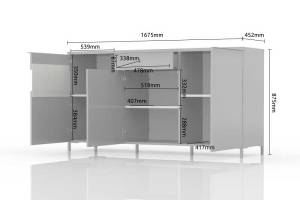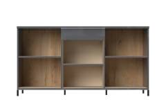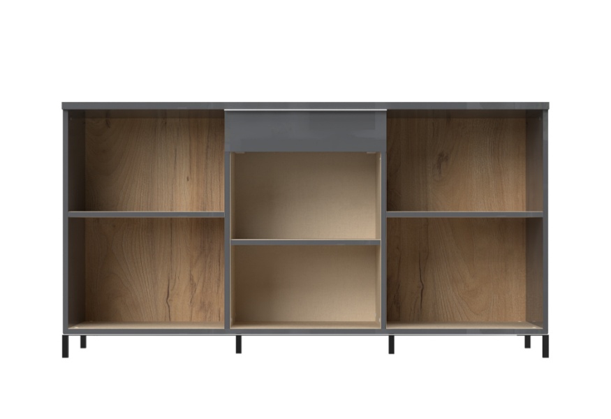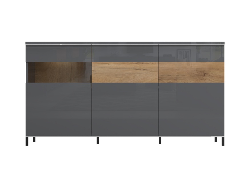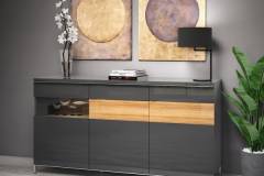Comoda 3 usi si sticla si 1 sertar ONYX 167x88x45cm antracit lucios/ nuc Pacific - sticla, manere si picioare crom