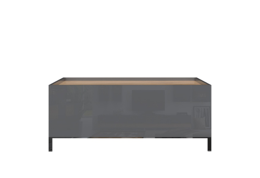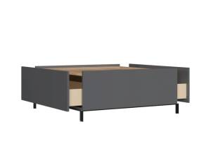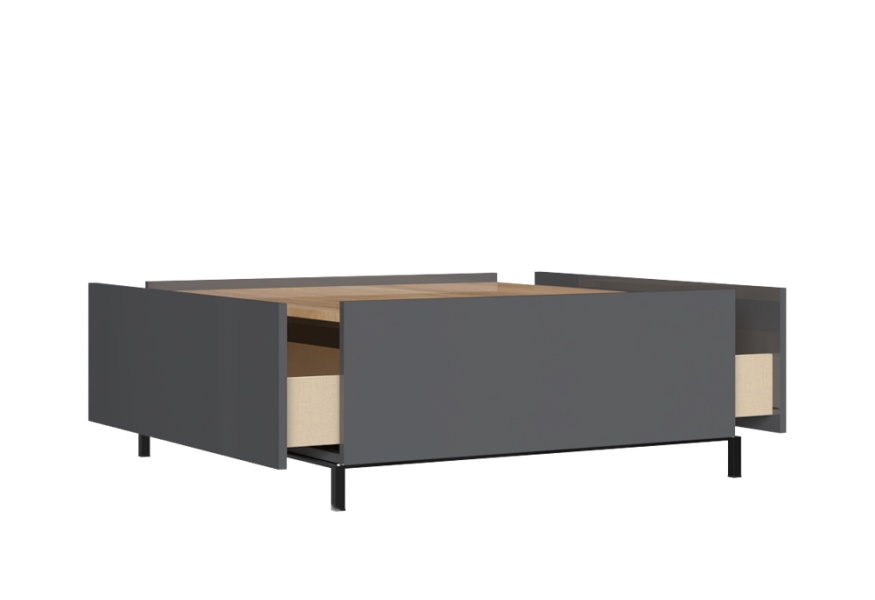 Masuta cu 2 sertare pentru depozitare ONYX 90x90x37cm antracit lucios/ nuc Pacific, picioare crom