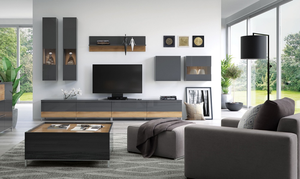 - decor antracit lucios si nuc Pacific, detalii din sticla