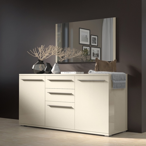 Comoda cu 3 usi si 2 sertare PIANO BEIGE 180x85x45cm bej lucios, manere si picioare crom