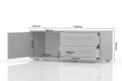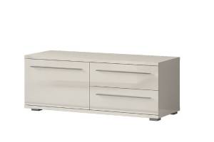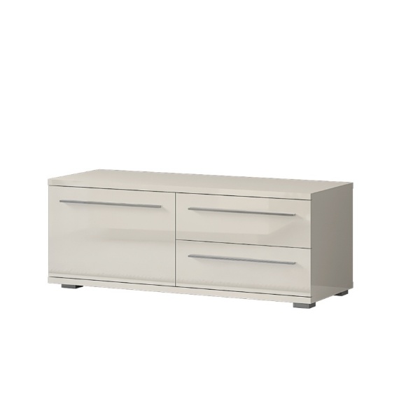Comoda TV cu 1 usa si 2 sertare PIANO BEIGE 120x46x45cm bej lucios, manere si picioare crom