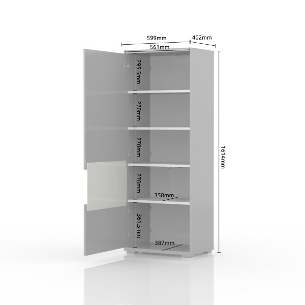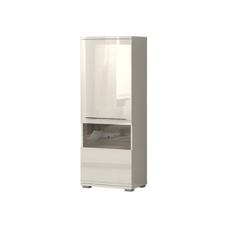 Vitrina inalta cu 1 usa cu sticla PIANO BEIGE 60x161x40cm bej lucios - sticla, maner si picioare crom