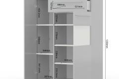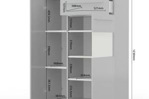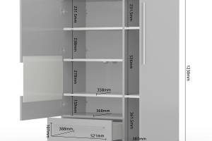 - doua usi si un sertar, decor beige lucios, detalii din sticla