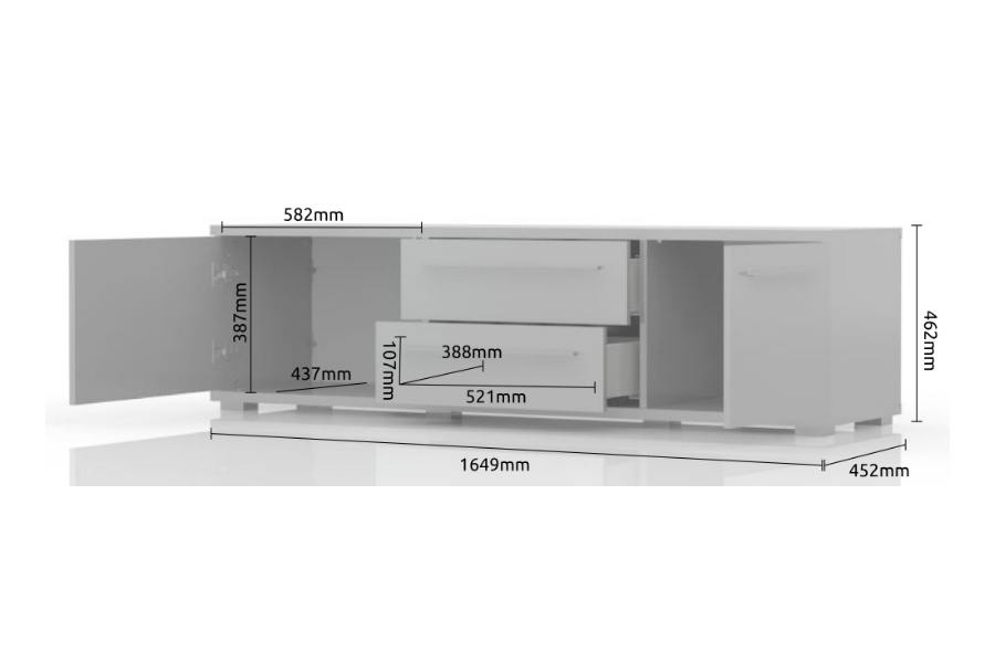 PIANO WHITE COMODA TV 165 CM (TV165-2K2F/PN.70)