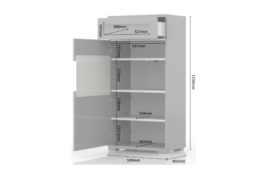 PIANO WHITE VITRINA 60X123 CM (V60-1KS1F/PN.70)
