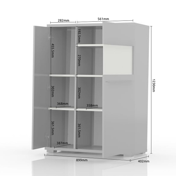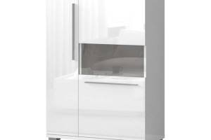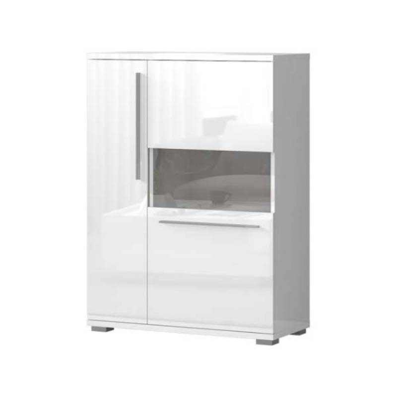 Vitrina lata cu 2 usi cu sticla PIANO WHITE 90x123x40cm alb lucios - sticla, manere si picioare crom