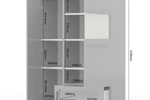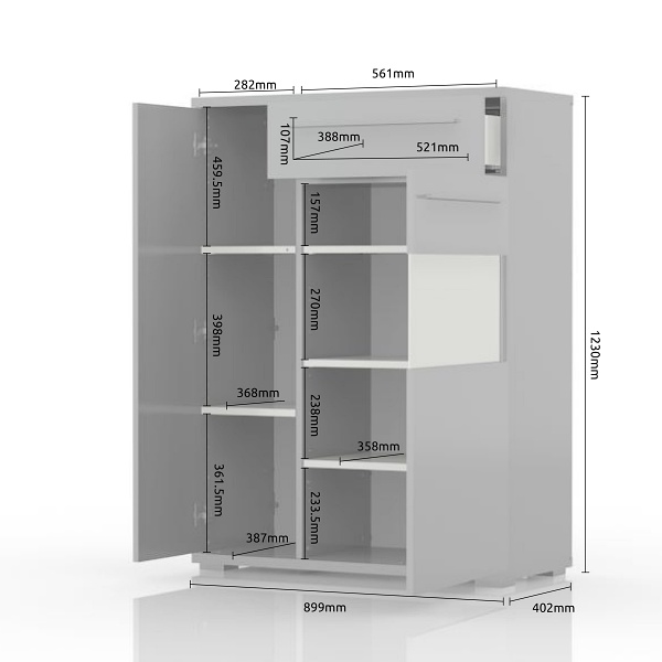 - doua usi si un sertar, decor alb lucios, detalii din sticla