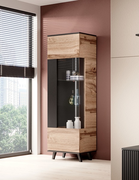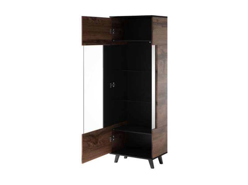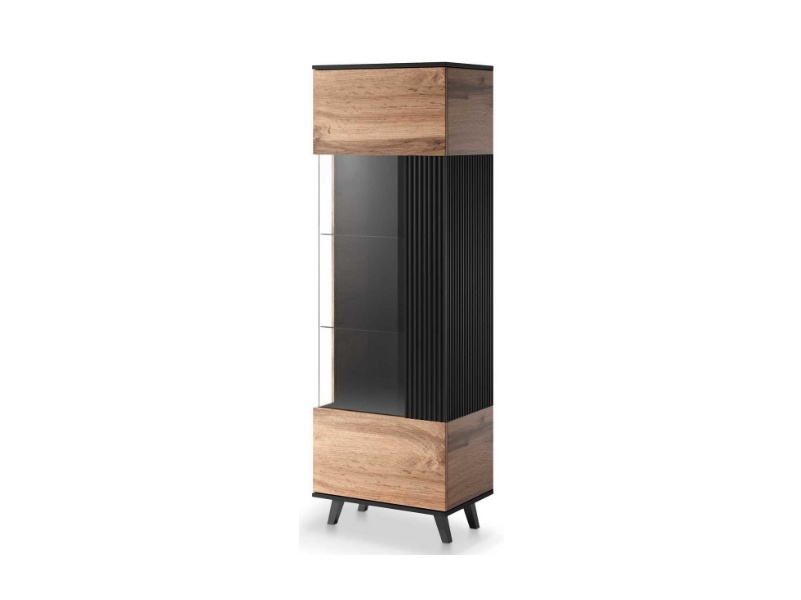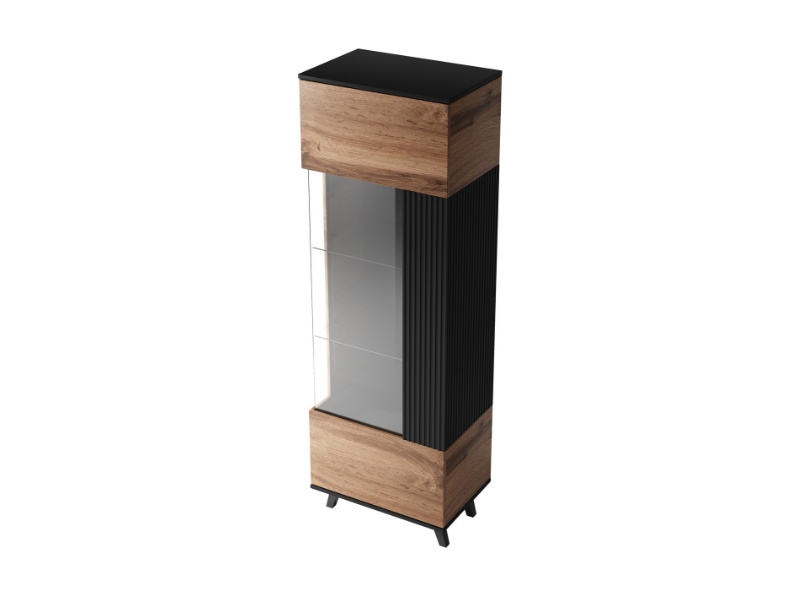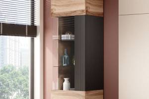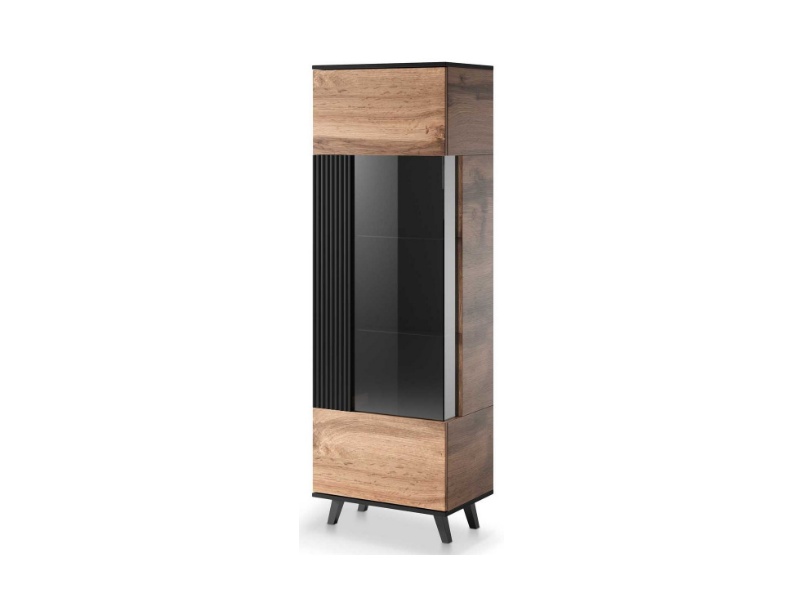 Vitrina inalta cu usa din sticla W-1 RANDOM 60x182x40cm stejar/ negru