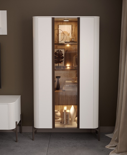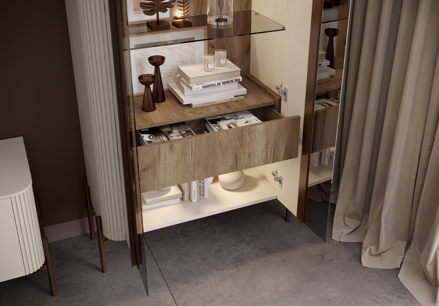 Vitrina cu 2 usi cu sticla RONDO 94x180x41cm casmir/ sticla fumurie, picioare si manere Midnight Copper