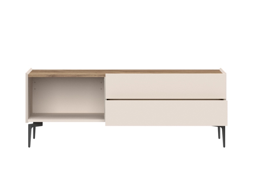 Comoda TV cu picioare negre, 1 usa si 2 sertare SKY 45 147x56x47cm casmir/ stejar tabac