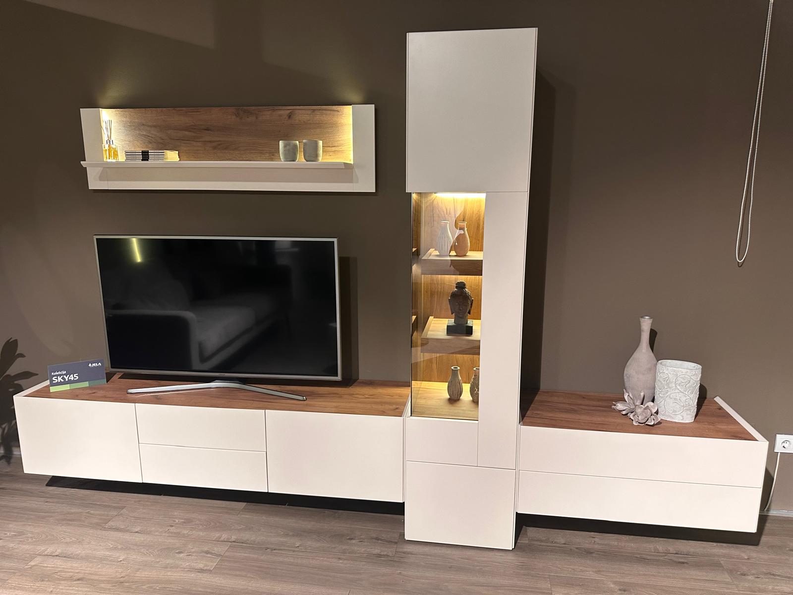 Colectia SKY 45 impresioneaza prin designul modern si nuantele elegante de casmir mat si stejar tabaco. Cu un finisaj durabil si rafinat datorita lacului UV si sistemului de inchidere soft close, este o colectie foarte populara, perfecta pentru un living contemporan si sofisticat.