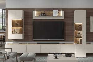Pretul afisat nu include polita suspendata, comodele tv,comoda din lateral, masuta, montajul, alte piese de mobilier si accesoriile din imaginea de prezentare a produsului.
