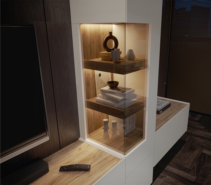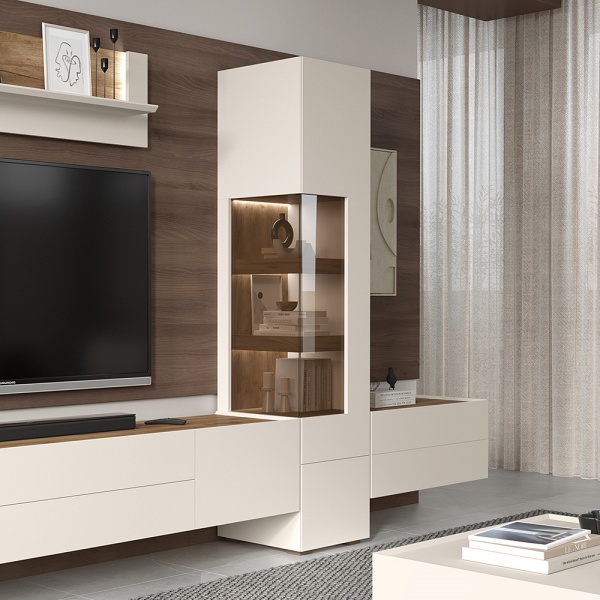 Vitrina inalta cu led SKY 45 45x201x47cm casmir/ stejar tabac - sticla