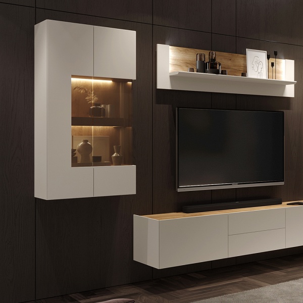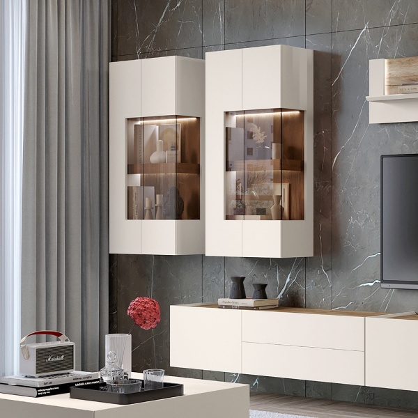 Vitrina suspendata cu led SKY 45 62x125x30cm casmir/ stejar tutun - sticla