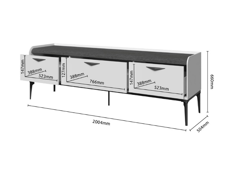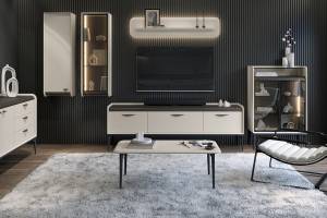 Comoda TV cu sertare SOFFY 201x66x50cm Pepper White/ Stejar Melinga
