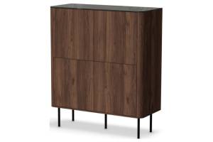 Comoda inalta SOLANO 100x116x40cm nuc Warmia/ marmura neagra, picioare negre