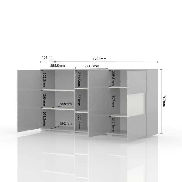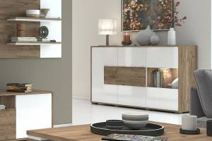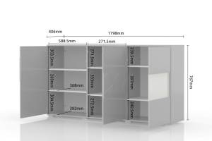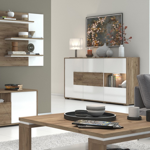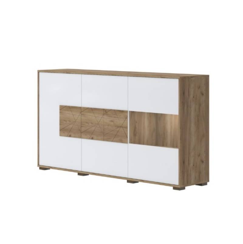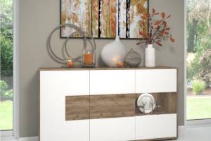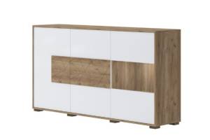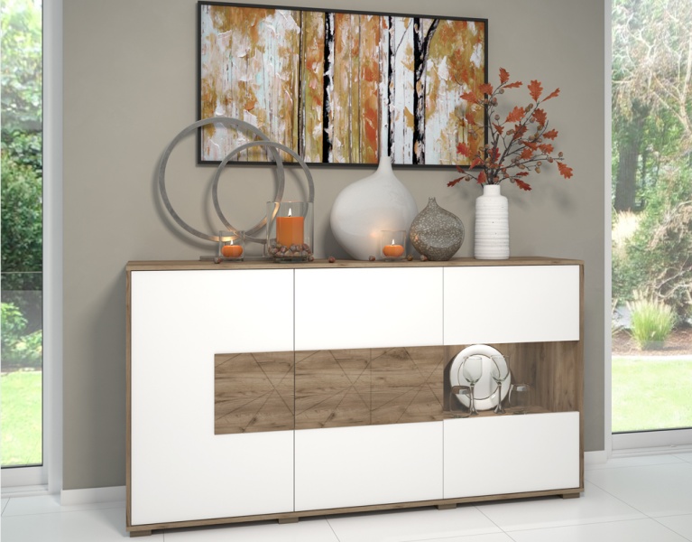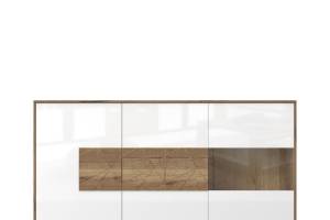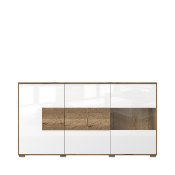 - trei usi MDF decor alb cristal lucios / stejar Tobacco, detalii din sticla temperata (4mm)