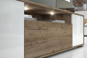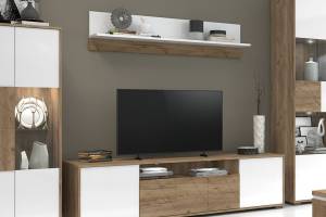 - doua usi si un sertar MDF decor alb cristal lucios / stejar Tobacco