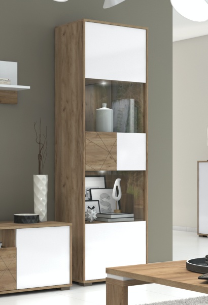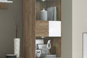 - o usa MDF decor alb cristal lucios / stejar Tobacco, detalii din sticla temperata (4mm)