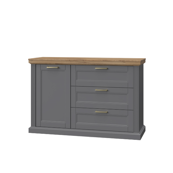 Comoda cu 1 usa si 3 sertare TARA GREY 138x91x48cm grafit mat/ nuc Pacific