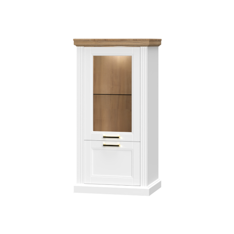 Vitrina cu 2 usi cu sticla TARA WHITE 66x132x48cm alb mat/ nuc Pacific