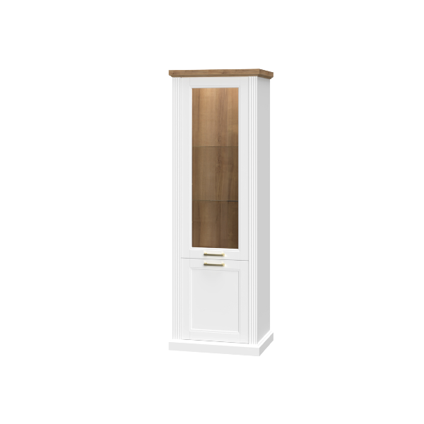 Vitrina inalta cu 2 usi cu sticla TARA WHITE 66x200x48cm alb mat/ nuc Pacific