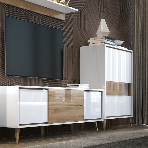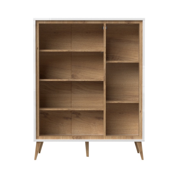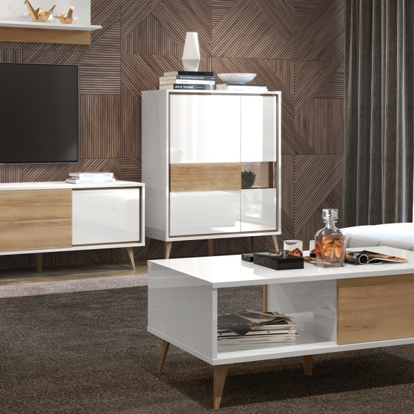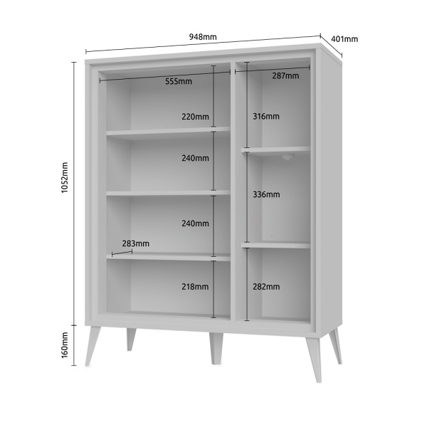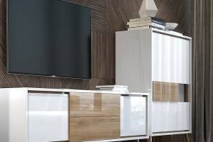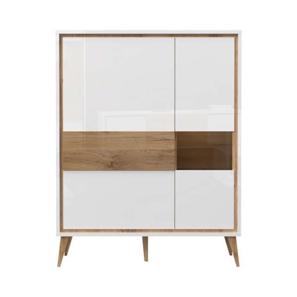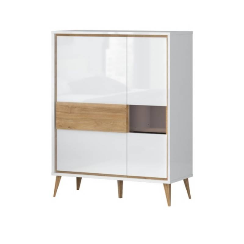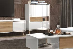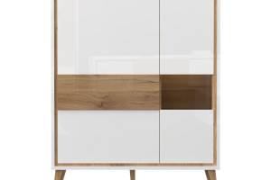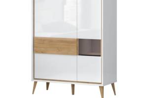 - doua usi (25mm) decor alb cristal lucios, nuc Pacific, detalii din sticla