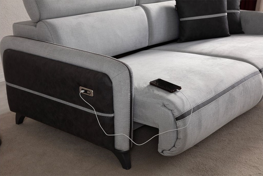 Pretul afisat este pentru coltar in varianta standard (fara sistem de incarcare USB, reglaj electric al sezutului, recliner tv si Sound system). Acestea se pot achizitiona separat.