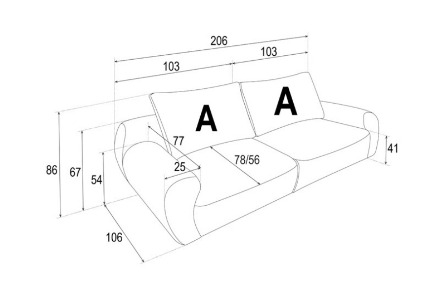Canapea 2 locuri fixa NORTE 206x106cm personalizabil