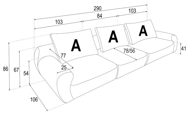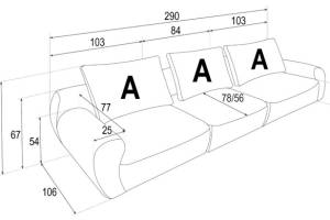 Canapea 3 locuri fixa NORTE 290x106cm personalizabil
