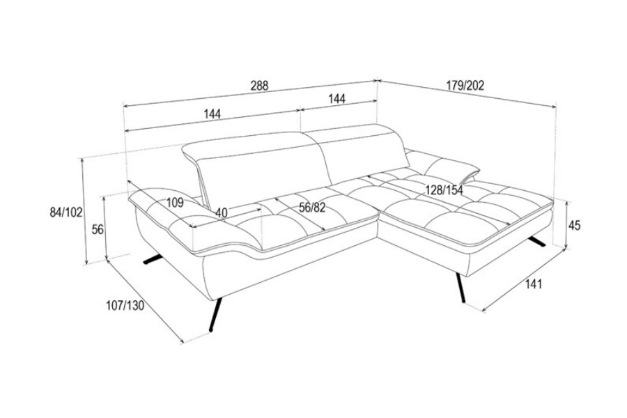 Latime totala: 179/ 202 cm