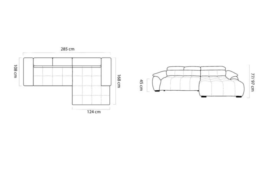 Coltar cu reglaj electric ALVIN S cu tetiere reglabile, personalizabil 285x168cm