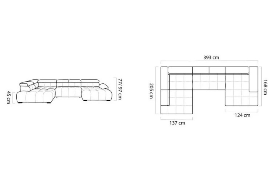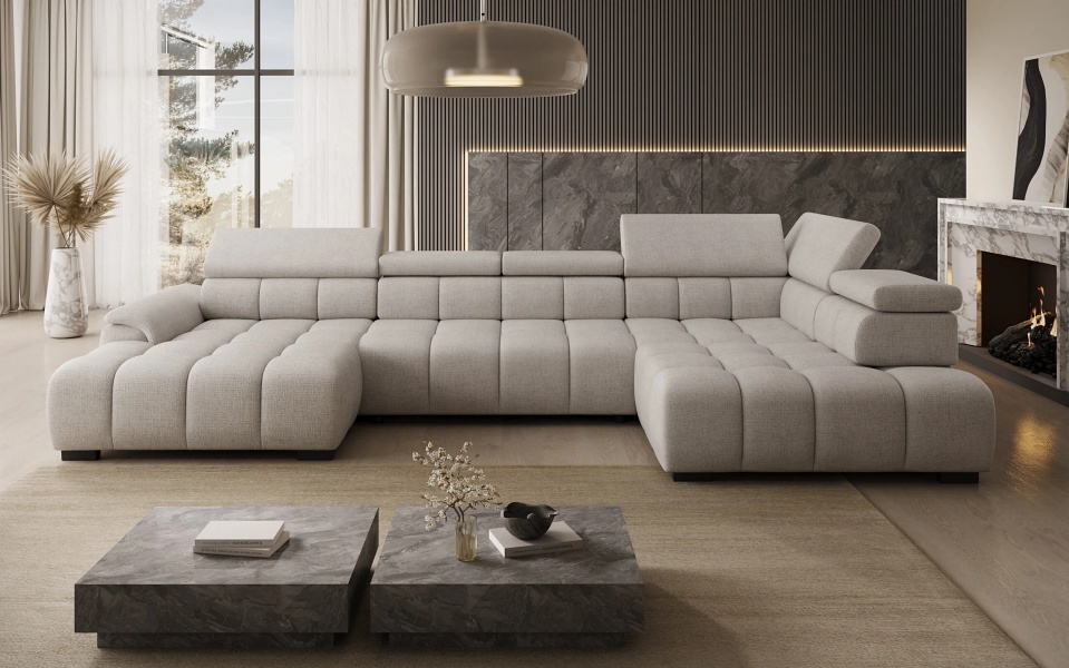 Coltar cu reglaj electric ALVIN XL cu tetiere reglabile, personalizabil 393x205x168cm
