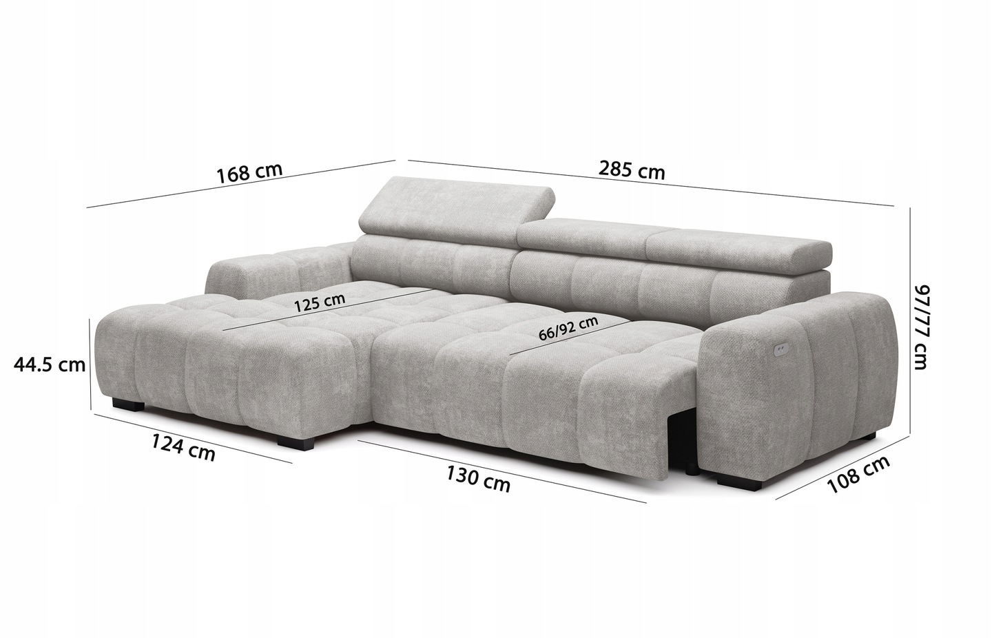 Coltar cu reglaj electric BULL S cu tetiere reglabile, personalizabil 285x168cm