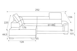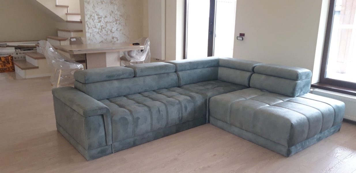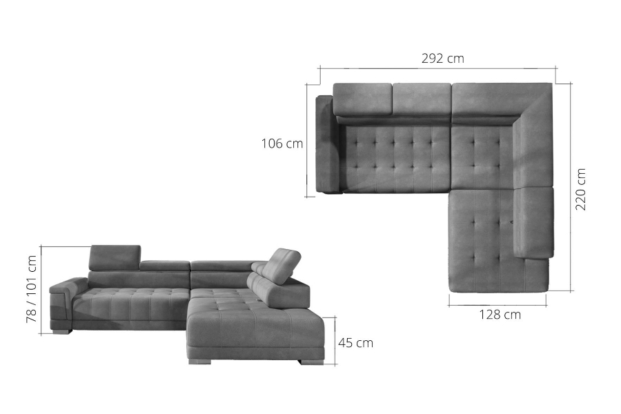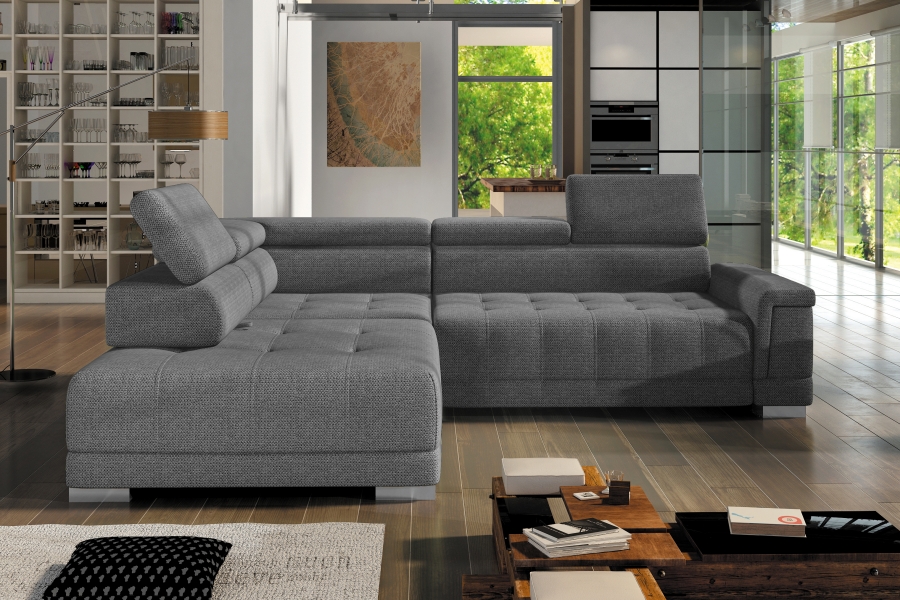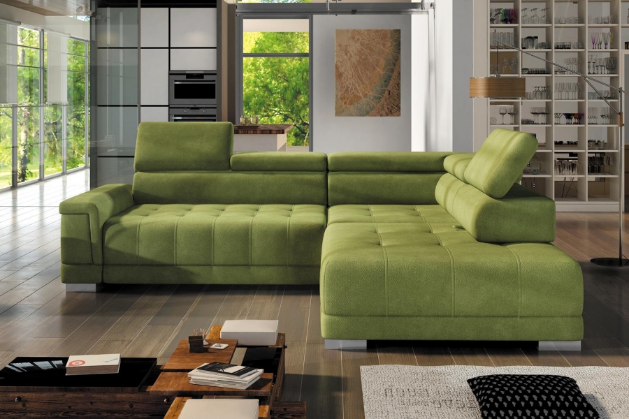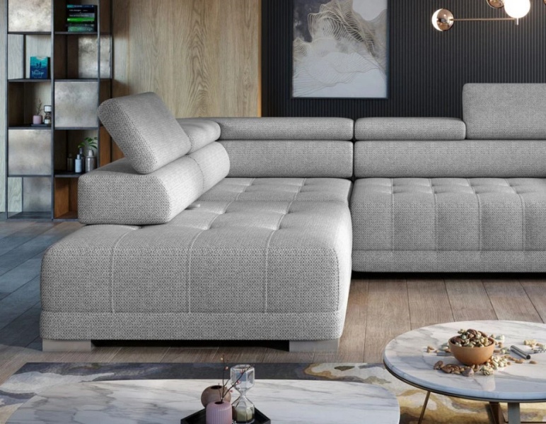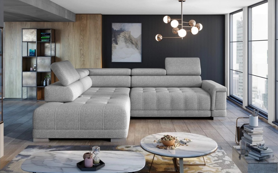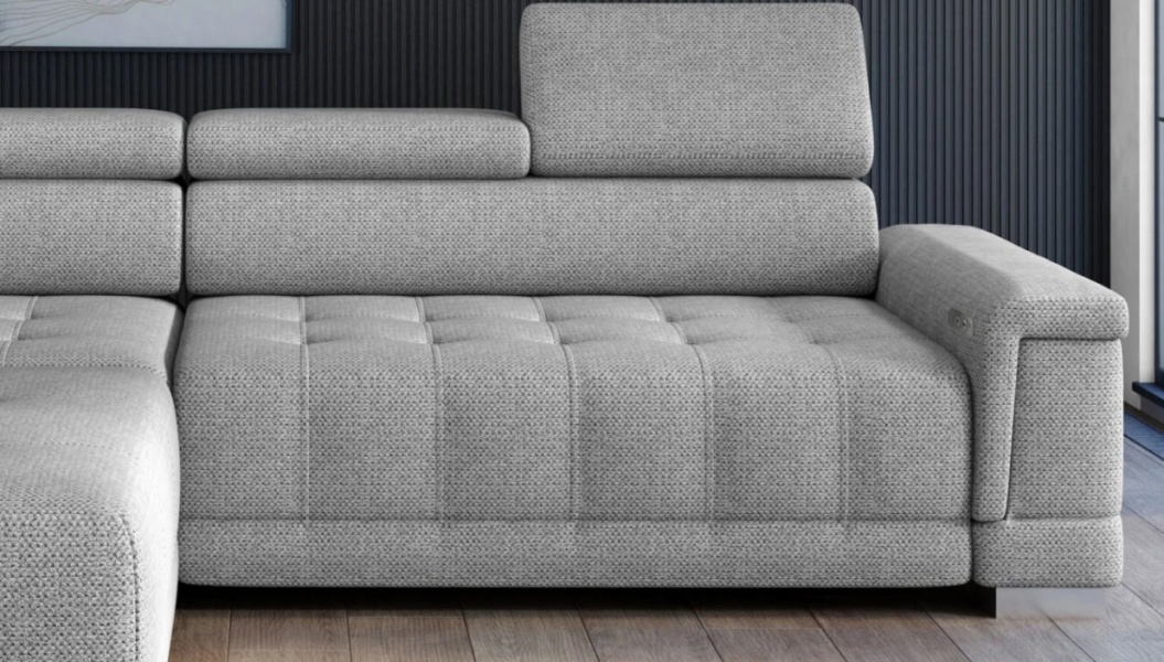 Coltar cu reglaj electric CAMPO L cu tetiere reglabile, personalizabil 292x220cm