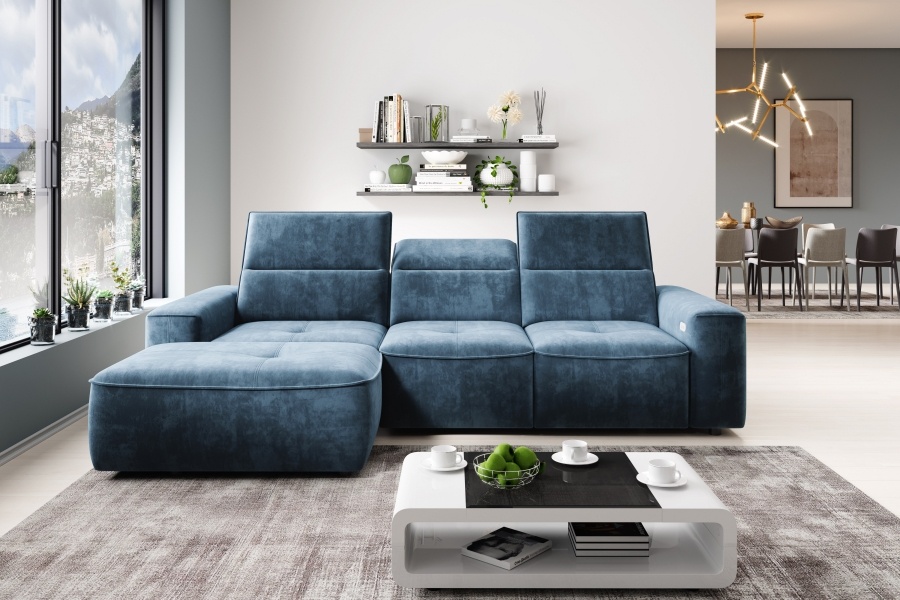Coltar cu reglaj electric COLOMBO S cu lada pentru depozitare, tetiere reglabile, personalizabil 275x182cm