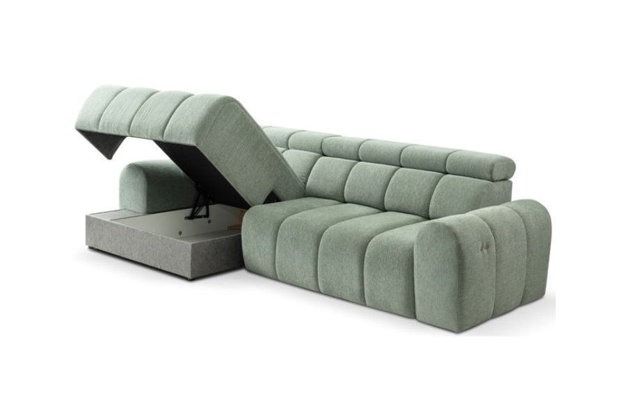 Coltar cu reglaj electric CORFU cu lada pentru depozitare, tetiere reglabile 290x152cm personalizabil