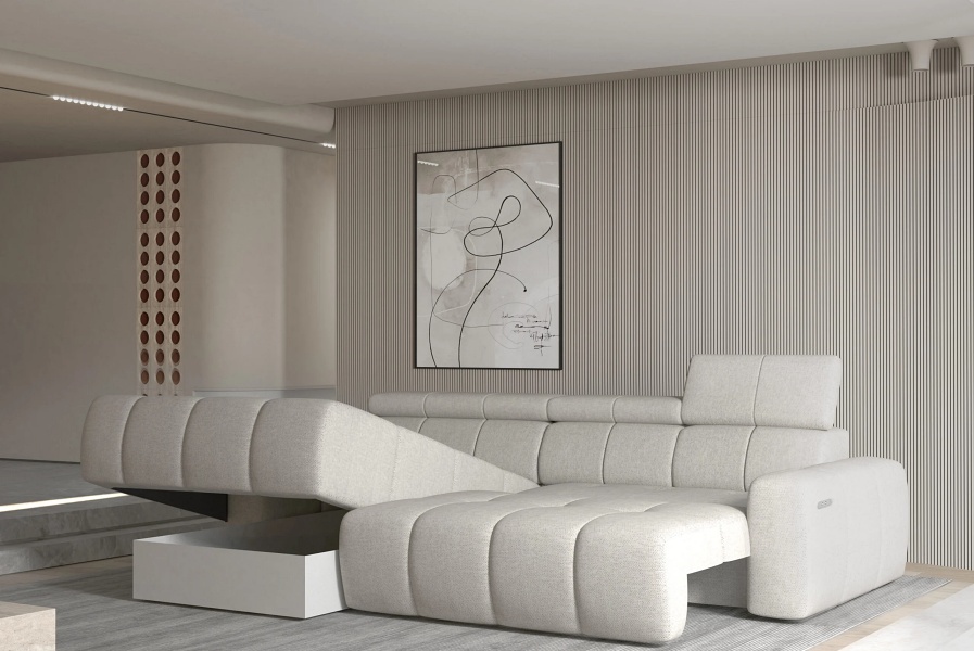 Coltar cu reglaj electric ENZO S cu lada pentru depozitare, tetiere reglabile, personalizabil 276x177cm