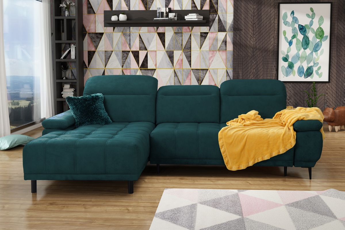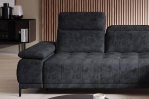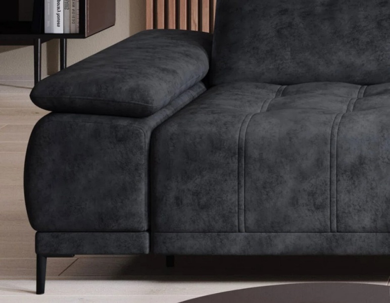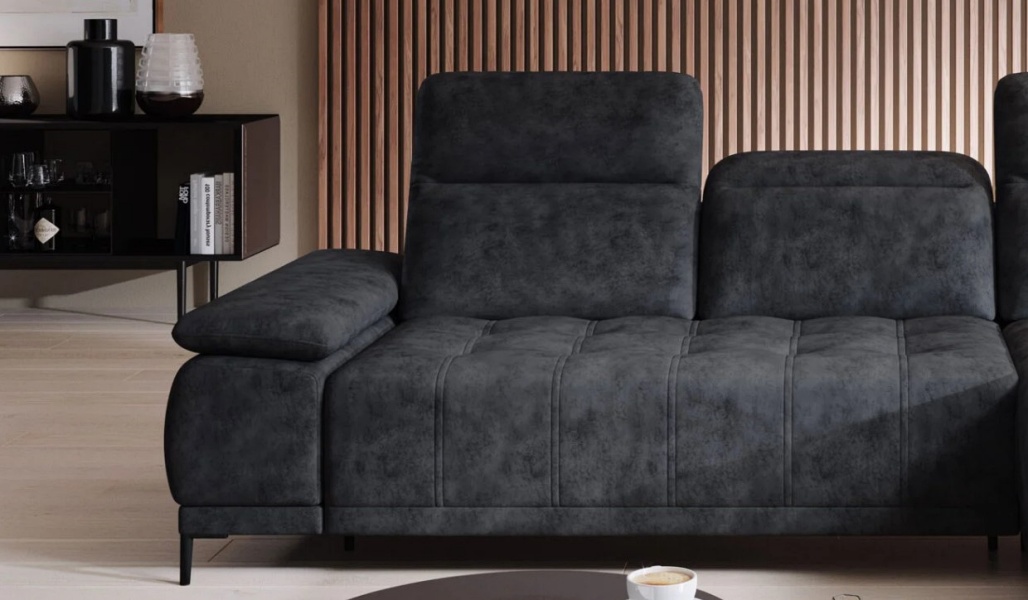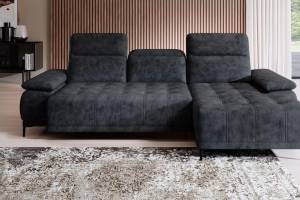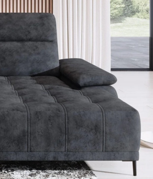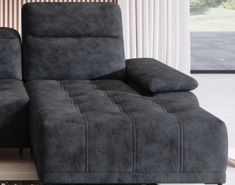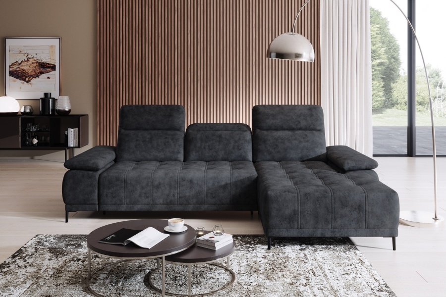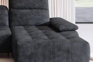 Coltar modern cu reglaj electric, tetiere reglabile, decor din lemn elegant si arcuri sinusoidale pentru un confort optim. Coltar cu reglaj electric FOCUS MINI, perfect pentru un living stilat si functional.