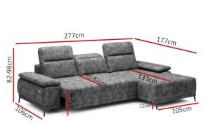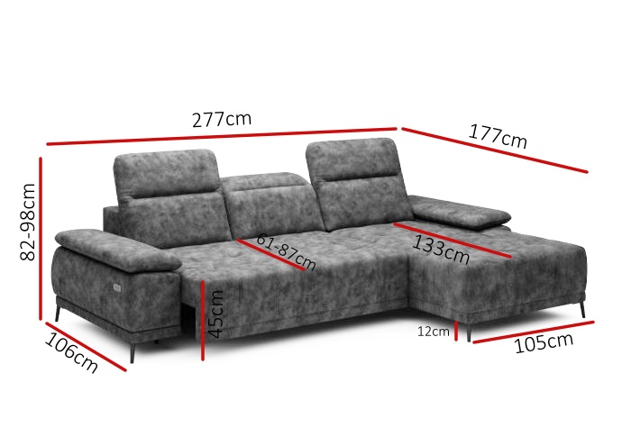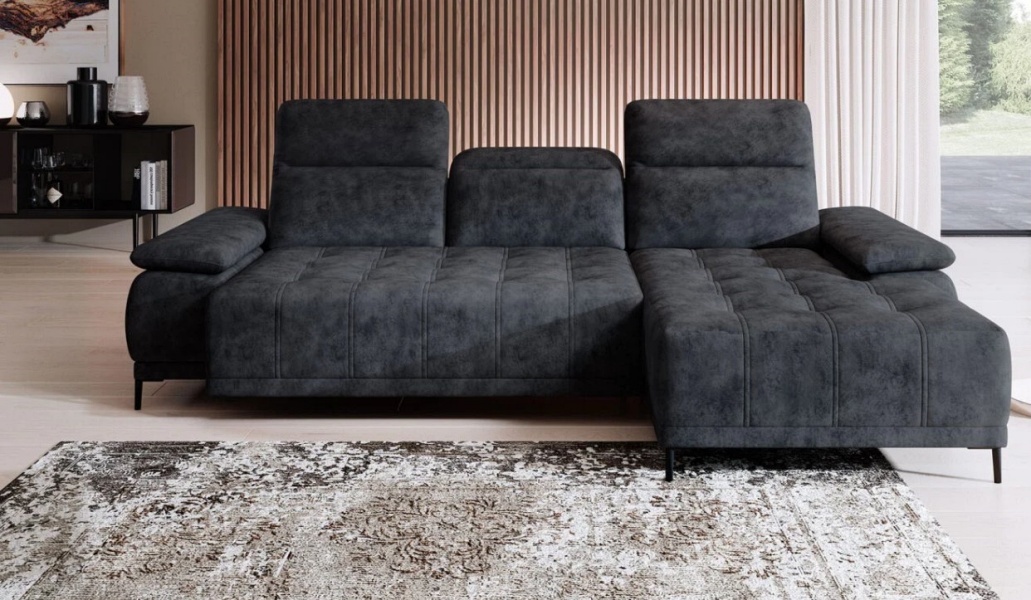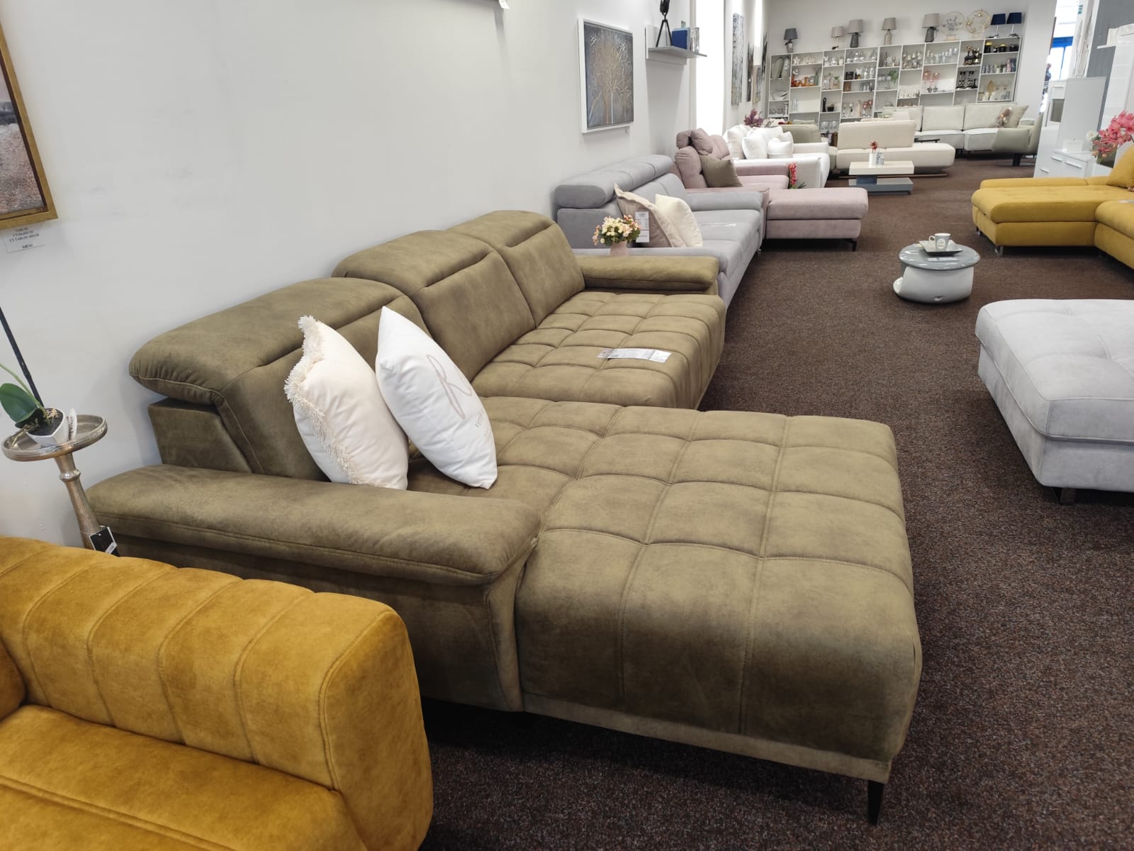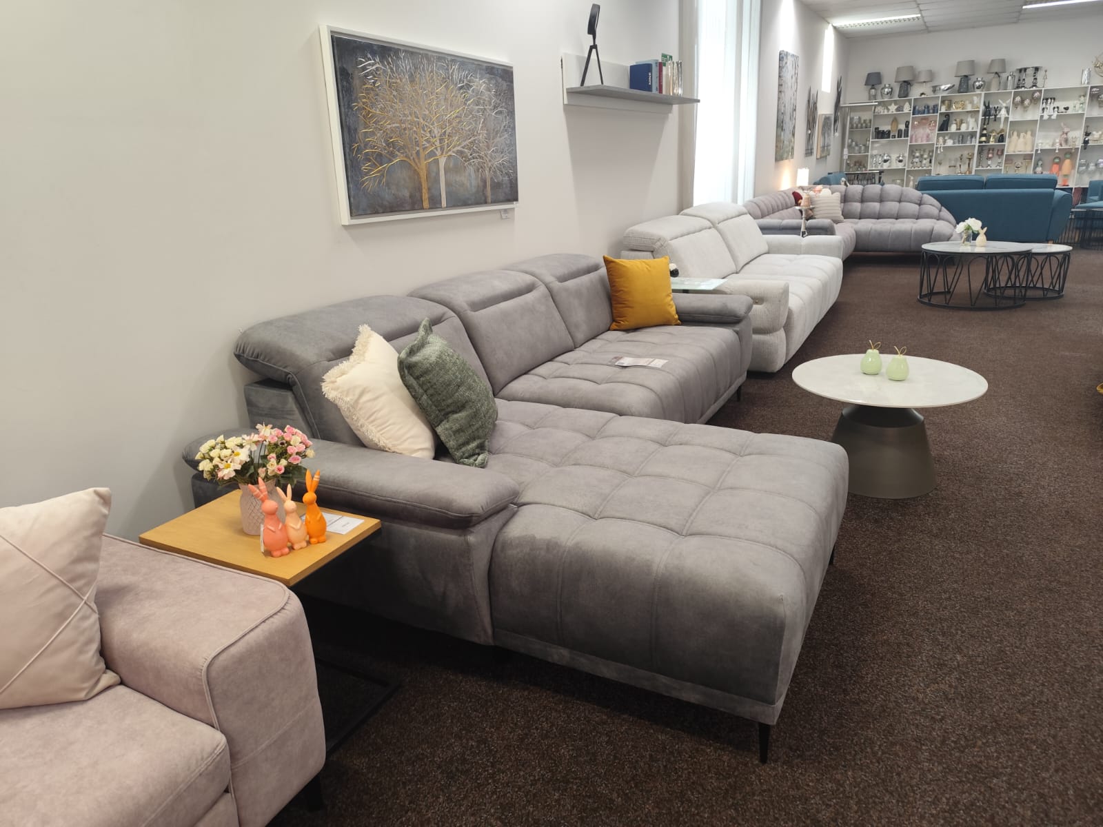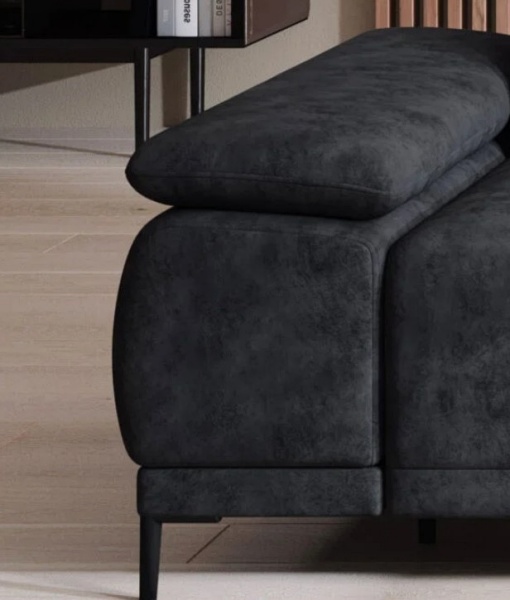 Coltar modern cu reglaj electric, tetiere reglabile, decor din lemn elegant si arcuri sinusoidale pentru un confort optim. Coltar cu reglaj electric FOCUS MINI, perfect pentru un living stilat si functional.
