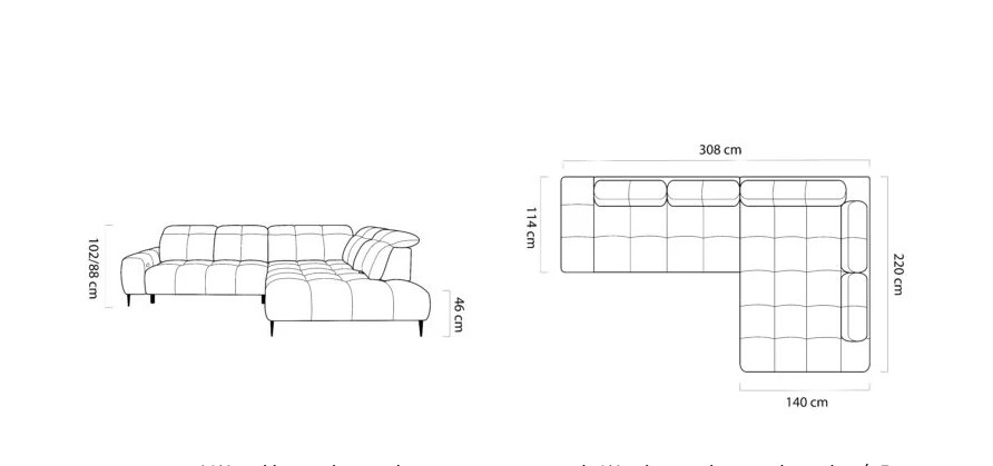 Coltar cu reglaj electric GIOVANNI L cu tetiere reglabile, spatar reglabil, personalizabil 308x220cm